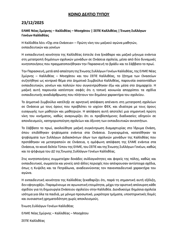 Σύνδεσμος ψηφίσματος: https://kallithea.gr/?p=41211