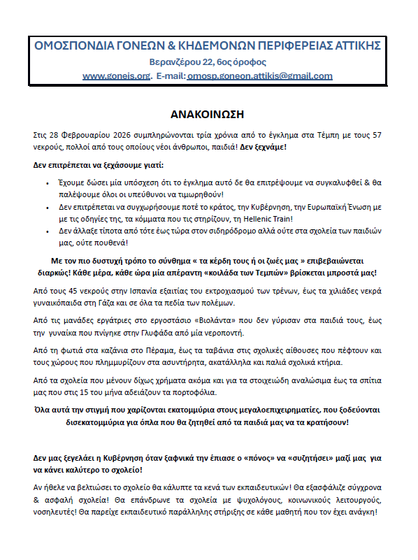 Ένωση Συλλόγων Γονέων Καλλιθέας https://enosi-kallitheas.blogspot.com
